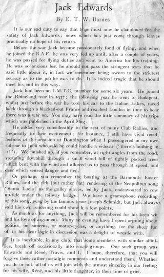 Avant la guerre Jack Edwards avait la passion de