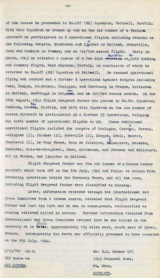 (mitrailleur) Harry Donald PARKER - 24 ans