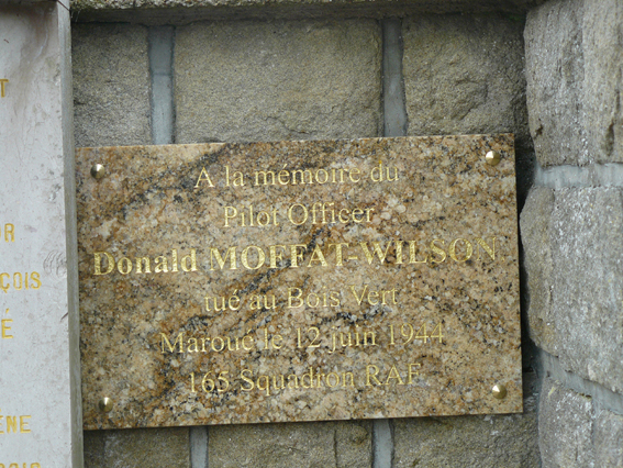 Intense moment d'émotion pour les membres de l'association Bretonne du Souvenir Aérien 1939-3945 en ce samedi 13 juin 2009 à MAROUÉ, arrondissement de LAMBALLE (22), lors de la Commémoration de la mort de ce jeune pilote Officier de la Royale Air Force, DONALD MOFFAT WILSON, il avait 21 ans. Après presque deux années de recherches et de contacts nous nous réunissions pour nous souvenir. Monsieur le Maire de LAMBALLE, Madame la Maire adjointe de Maroué, ont organisé cette cérémonie où nous nous retrouvions proche de la population, des témoins et des différentes organisations d'anciens combattants de l'arrondissement, sans oublier bien sûr les membres de la famille venus d'IRLANDE, d'ANGLETERRE et de NOUVELLE ZÉLANDE.