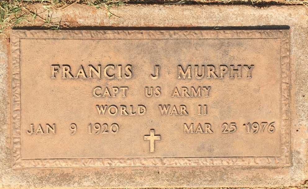 Le 1st Lt. Francis James Murphy est né le 9 janvier 1920. Place d'enlistement, SACRAMENTO. Résidence, SACRAMENTO.