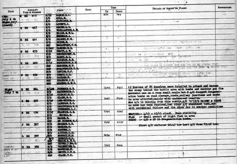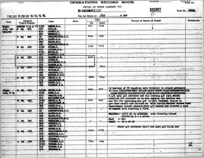 noms de l'équipage du Boston III BZ262 (code RH-O) et