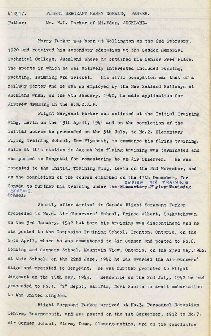 d'Auckland, évoquant la vie du Flight Sergeant Harry