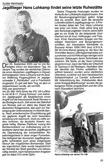Le pilote de chasse Hans LOHKAMP trouve son dernier