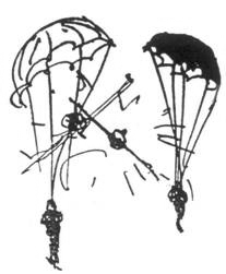 Tout à coup, on entend un bruit d'avions ce qui était très fréquent, un coup d'il en l'air, ils sont deux ..Ils volent à haute altitude, tout à coup un choc en l'air, presque aussitôt deux boules noires sautent dans le vide. Ce sont des parachutistes (un seul pilote à bord dans chaque avion de chasse anglais).