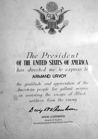 Mon père avait choisi de construire notre maison en proximité de la gare, car il était ferronnier et son atelier était tout proche. Il fabriquait des pentures et des gonds pour le bâtiment. Ainsi c'était facile pour expédier ses colis. Les aviateurs furent bien cachés dans les dépendances. Ils y passaient la journée et la nuit mais entre temps le soir ils nous rejoignaient. Ils prenaient des précautions pour arriver chez nous. Il ne fallait pas qu'ils soient découverts. Le midi, l'un d'entre nous leur apportait leur repas caché dans une brouette, le tout bien dissimulé, souvent sous des fagots. Ma mère, le soir leur faisait de bons repas. Ces repas nous le prenions en famille. Ils étaient jeunes et avaient dans les âges de mes deux frères Emile, 22 ans et Jean, 20 ans. Le soir nos volets étaient toujours fermés. Il ne fallait pas que la lumière soit repérée. C'était un ordre de l'occupant. Un soir, nous étions à table, quand soudain on entendit frapper. Silence immédiat. Mon père calmement se rendit à la porte. Deux allemands lui demandèrent leur route. Mon père fit en sorte de les éloigner au plus vite, leur indiquant la direction à prendre. Pendant les repas, bien que nous ne parlions pas la même langue, les conversations allaient bon train. Nous essayions de nous comprendre mutuellement. Nous nous étions procuré un dictionnaire Anglais Français. Ces hommes étaient, depuis leur arrivée à Plouguenast, habillés en vêtements civils bien évidemment. Rien ne laissait supposer qu'ils étaient étrangers. Ils avaient une bonne éducation et étaient très polis. Le lieutenant Ritt faisait très jeune. On lui donnait 18 ans (il avait 24 ans). Il était toujours sur le qui vive. Toujours en alerte au moindre bruit suspect. Après une semaine, leur départ fût décidé. Avant de nous quitter, le Lieutenant Higdon demanda notre dictionnaire et écrivit sur un papier ''Vous, très bons'' et le remis à mes parents. Le départ fut fixé à 4 heures du matin. C'était très risqué mais il fallait absolument qu'ils changent de lieu. Le gendarme Toupin accompagna mon père. Les aviateurs étaient cachés parmi des bidons dans l'arrière de la camionnette C4 Citroën. Ils prirent la route de Loudéac où ils étaient attendus au garage Michard. Il fallait à tout prix éviter les patrouilles allemandes. Au petit matin la C4 se présenta devant la porte du garage, Mademoiselle Denise Michard ouvrit cette porte et la referma aussitôt. Elle les attendait. Immédiatement, les trois Américains furent cachés dans la maison familiale juste derrière le garage. A l'autre extrémité un officier allemand s'était installé depuis plusieurs mois. Il avait entendu la porte s'ouvrir et se refermer. Il interrogeât la jeune fille dans la matinée. Celle-ci répondit qu'elle s'était trompée dans la programmation de son réveil car elle souhaitait se rendre à la messe. ''Je me suis levée bien trop tôt !'' dit elle. L'officier n'y fit pas attention. La camionnette marchait à l'essence, une denrée rare pendant la guerre. Mon père arrivait à faire fonctionner le moteur avec un mélange à base d'alcool à brûler. Les trois aviateurs Américains restèrent une journée en ce lieu. On avait prit soin de les habiller dans des vêtements propres et bien à leur taille. Il fût convenu aussitôt de leur départ vers Paris où ils devaient rejoindre une filière d'évasion. Mademoiselle Lecoq de Pontivy vint pour les accompagner. Tous avaient été munis de fausses cartes d'identité. A l'arrivée du train en gare de Loudéac tous montèrent à bord. Stupeur ! Il y avait un nombre important d'officiers Allemands dans les compartiments. Elle avait pris soin d'acheter trois journaux au kiosque de la gare dont elle remit un exemplaire à chacun. Ils ne comprenaient rien à ce qui était écrit, mais cela faisait plus vrai. Quand à Mademoiselle Lecoq, pour détourner l'attention, elle amusa au maximum les Allemands qui ne remarquèrent rien. Le train arriva à Paris et là, elle confia les trois Américains à de nouveaux hébergeurs. Une lettre de l'un d'eux après guerre adressée à mon père, nous informa qu'ils avaient été faits prisonniers en voulant franchir la frontière espagnole. Leur arrestation eut lieu le 16 décembre 1943. Ils finirent la guerre dans un Stalag pour aviateurs alliés en Allemagne. Monsieur Armand Urvoy et Mademoiselle Denise Michard dans une autre mission, convoyèrent aussi les trois sergents américains, du même équipage. Les sergents Bollinger, Kallas et Kelly eux aussi tombés sur Plouguenast. Voir récit dans cette biographie. Les deux fils de Monsieur Urvoy, Emile et Jean, furent victimes de la barbarie Nazie, exécutés dans la forêt de Lorge en juillet 1944. Après guerre, Monsieur Armand Urvoy reçu une lettre de remerciements du Président des Etats-Unis d'Amérique Eisenhower. Merci à Madame Loncle pour son témoignage et son aimable accueil.