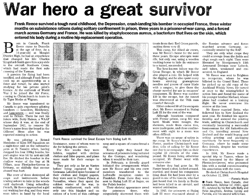 Le Pilot Officer Reece Françis est né le