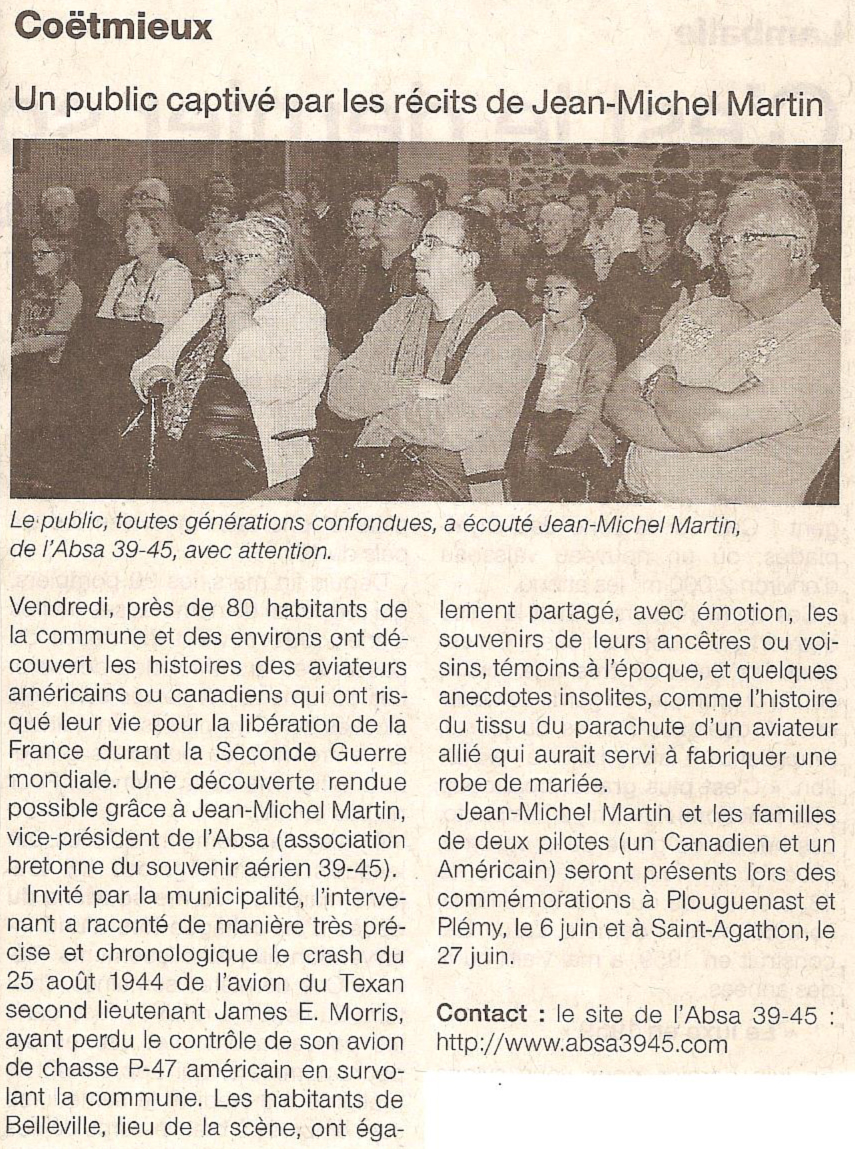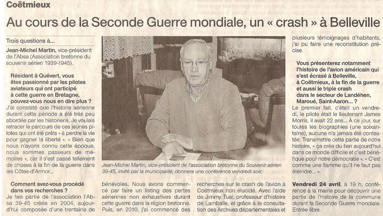 Histoire du crash du P-47D-28-RA. #42-28439 du 2nd Lt. James E Morris à Coëtmieux le vendredi 25 août 1944